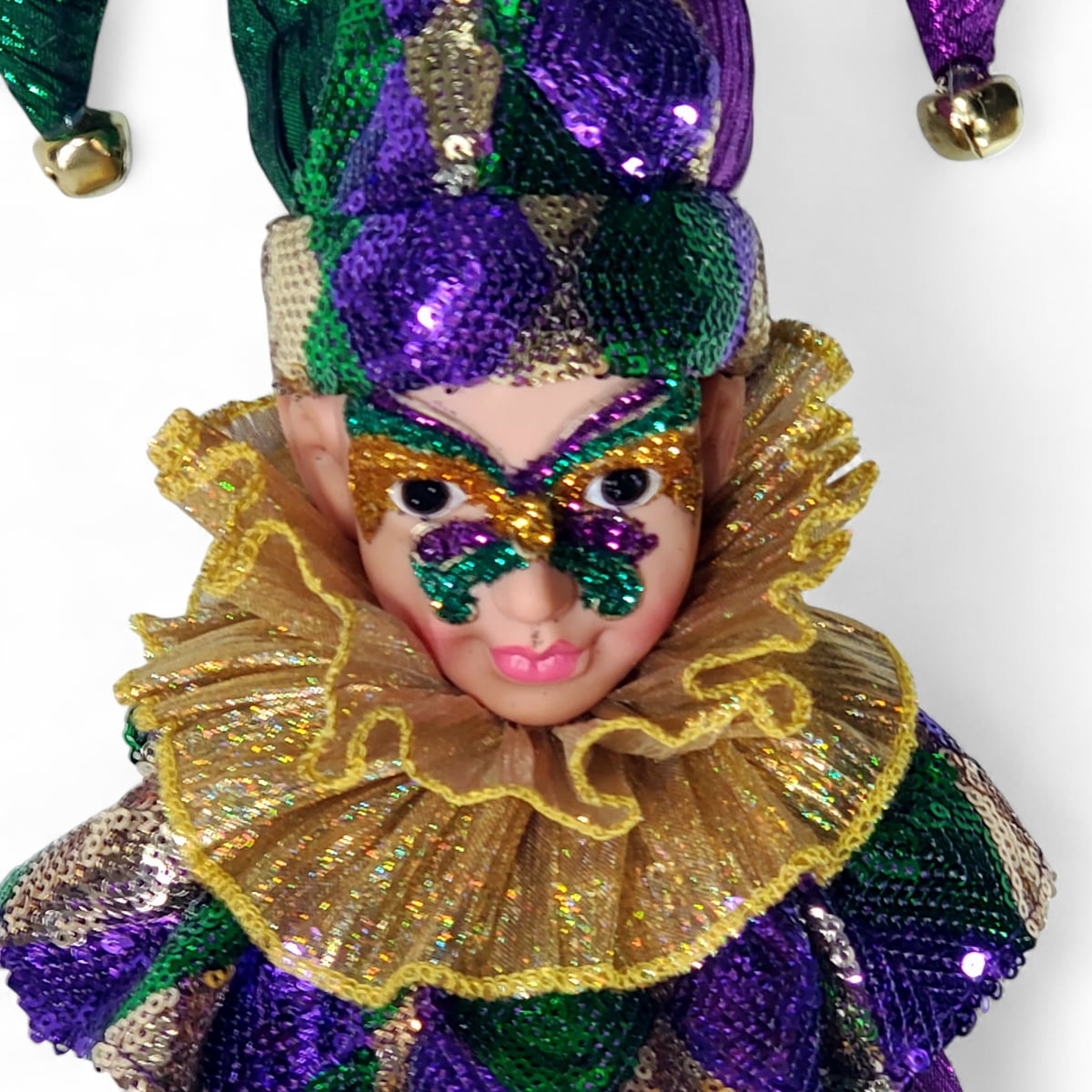 22" Mardi Gras Hanging Head Ornament in Harlequin Clothes