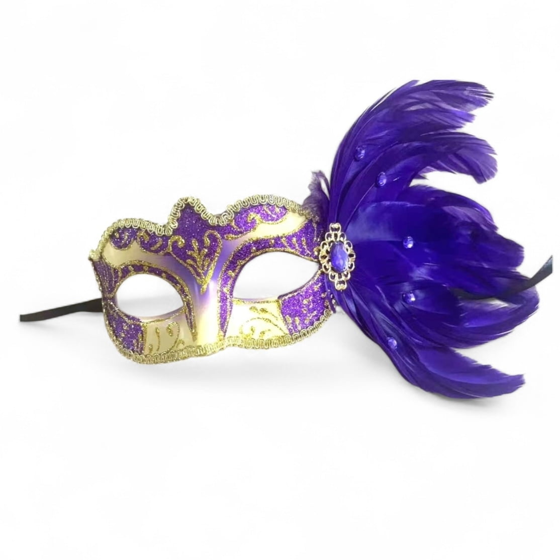 NEW!! 12" X 2" Purple Eye Mask w Purple Feathers