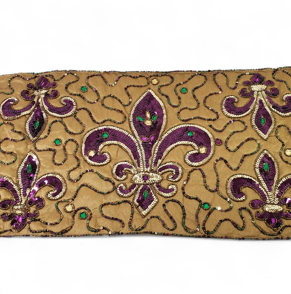 NEW!!! 12" x 52" Gold Runner w Multiple Fleur de Lis Hand Sewn