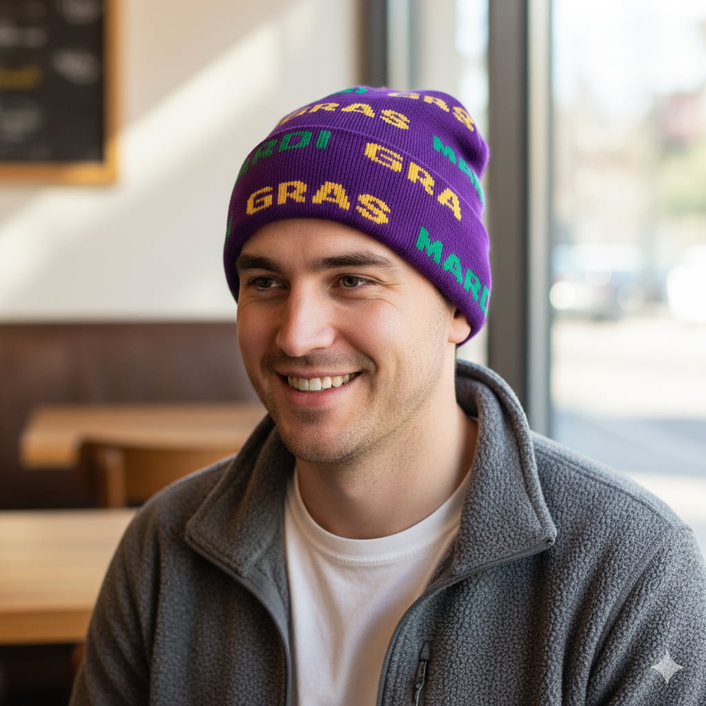 NEW!! Mardi Gras Beanie w Words Mardi Gras